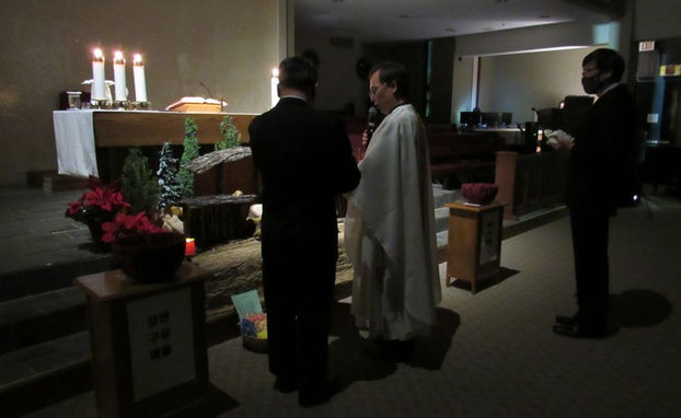 12월 24일(목) 오후 8시부터 아기 예수의 탄생을 축하하는 성탄 대축일 밤 미사가 본당 신부님 집전으로 교우들이 참석하신 가운데 대성전에서 봉헌되었습니다. 미사 중에는 아기 예수님께 봉헌되는 묵주기도 기도문과 성경 통독한 분들의 명단이 함께 봉헌되었습니다. 12월 25일(금) 오전 10시 30분에는 성탄 대축일 미사가 대성전에서 본당 신부님의 집전으로 봉헌되었습니다. 그동안 성탄 대축일 미사를 위해 봉사해 주신 사목위원, 성가대 그밖의 모든 봉사자들에게 감사드립니다.